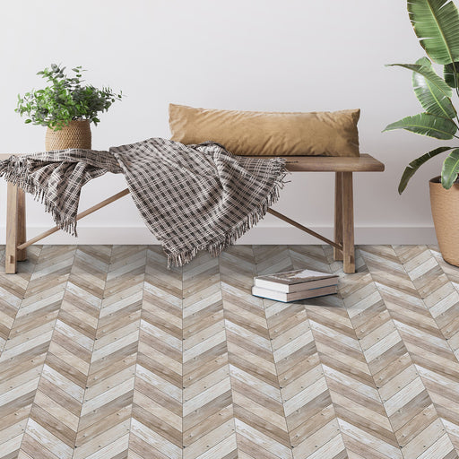 View full detailsRetro Style 12x12 Self Adhesive Vinyl Floor Tile - 20 Tiles, 20 sqft - Whitewash Chevron