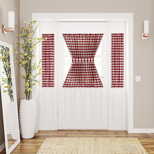 View full detailsBuffalo Check Rod Pocket Door Panel & Tieback, Soft Light Filtering, 25 x 72 Inches - Burgundy