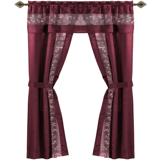 View full detailsFairfield 5 Piece Window Curtain Set with Embroidered Sheer Stripe and Attached Valance - Burgundy - 55x63