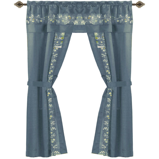 View full detailsFairfield 5 Piece Window Curtain Set with Embroidered Sheer Stripe and Attached Valance - Ice Blue - 55x63