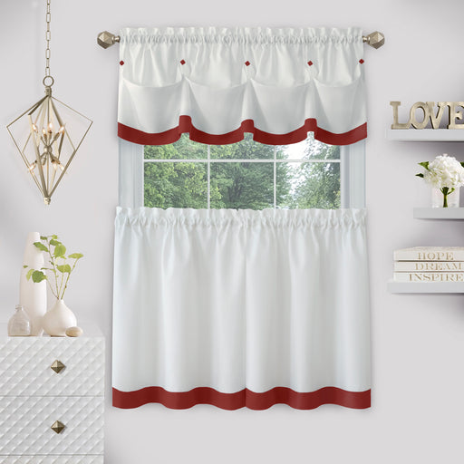 Window Curtain Tier Pair and Valance Set - Burgundy - 58x24 Product Overview Bring a touch of luxe charm to your windows with the Window Curtain T...