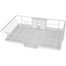 Extra Large 3 Piece Dish Rack Sink Set with Removable Drainboard & Utensil Holder - Heavy Duty Coated Wire - 19" x 12" x 5" - Silver